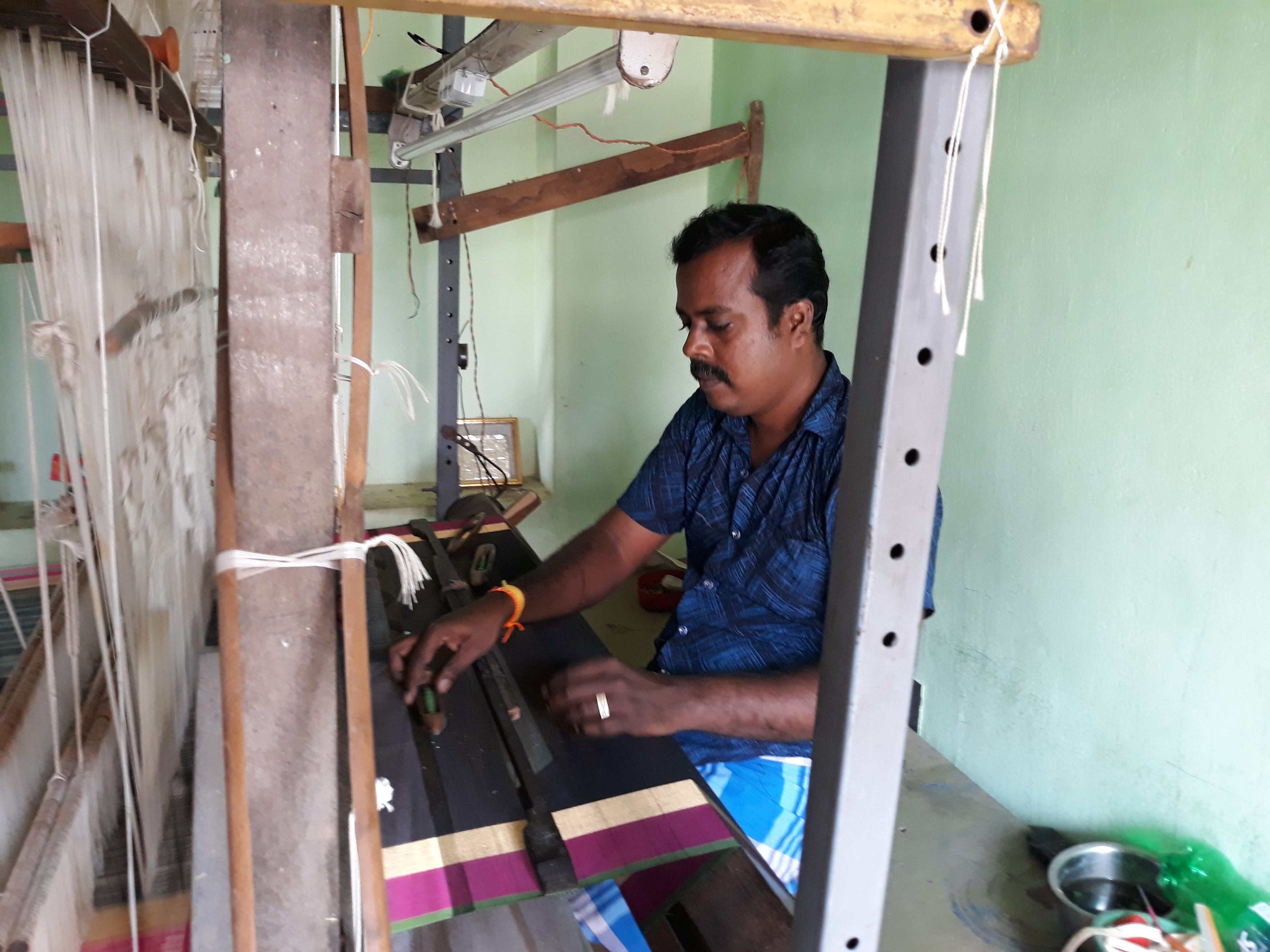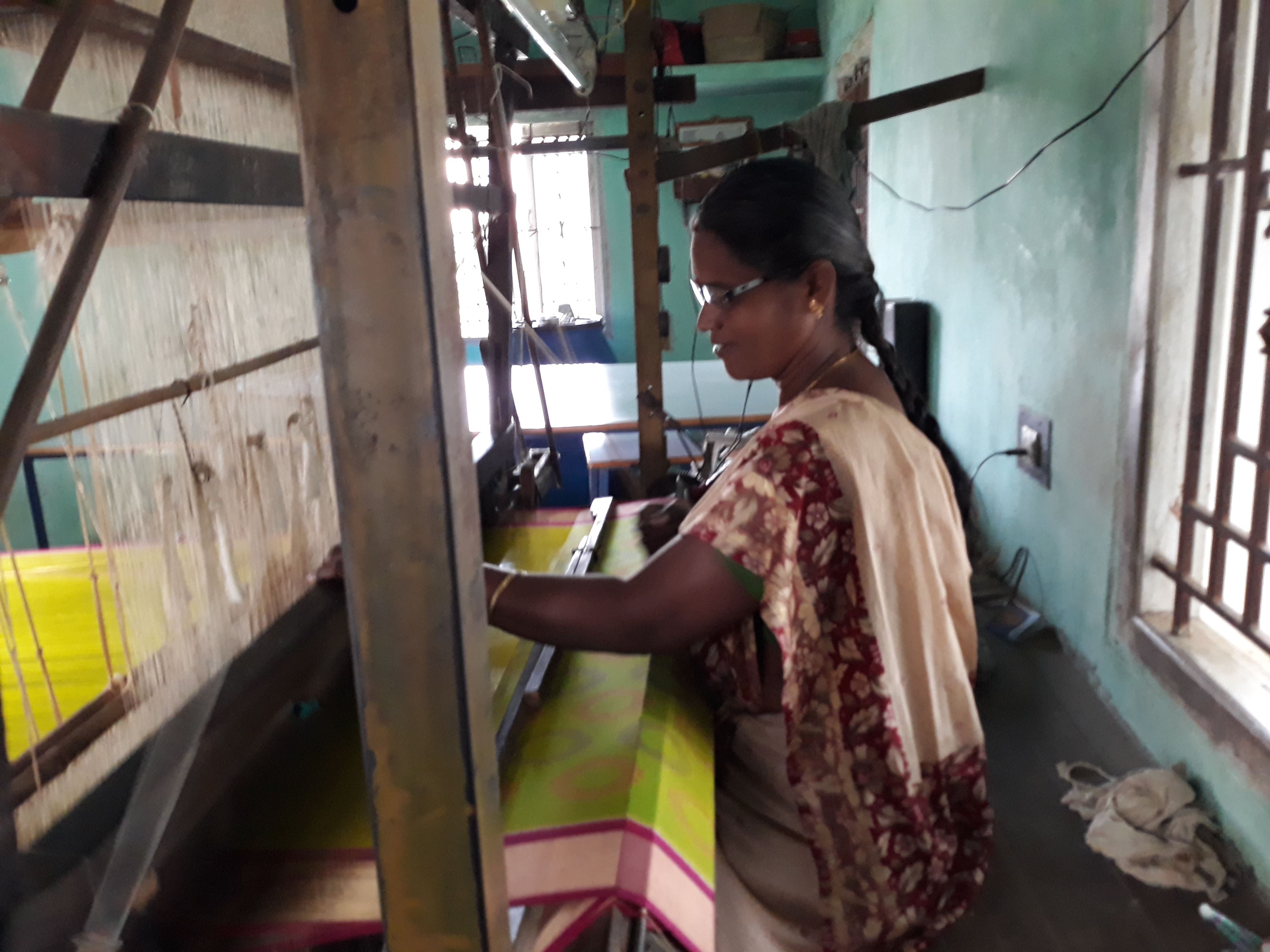 We are traditional weavers – my parents and grand parents all have been weaving for generations. We weave Pochampalli Silk cotton sarees. I make about 10 sarees a week and give it to master weaver who sells it for us.